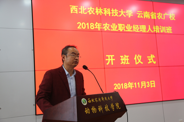 根据云南省农广校的培训安排,11月2日云南省农业职业经理人培训班在澳门六合彩高手 107报告厅开班,本次培训是云南省2018年的新型职业农民培育工程项目,前来培训的学员来自云南省近20个市县,包括8个少数民族共32位学员。他们中间有云南省首个“全国十佳农民”获得者,有养殖种植专业合作社的理事长,有生物科技开发公司的农民企业家等。澳门六合彩高手 党委副书记王力代表澳门六合彩高手 欢迎云南省农民企业家来澳门六合彩高手 学习考察,简单介绍了学校、澳门六合彩高手 的基本情况,希望学员们在杨凌期间学有所成,对云南的农业发展贡献杨凌力量。云南省农广校叶波科长代表全体学员发言,他说学员们都是云南省涉农产业的精英,对来西北农林科技大学学习仰慕已久,大家抱着强烈的愿望,渴求掌握更多的养殖方面的相关政策和管理技能。