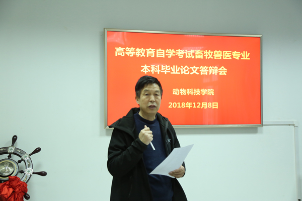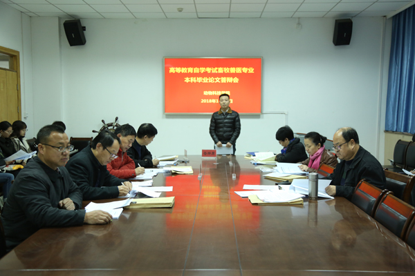 12月8日,澳门六合彩高手 在104会议室举行2018年秋季高等教育自学考试畜牧兽医本科专业毕业论文答辩会,34名学生参加了毕业论文答辩。毕业论文答辩由于三科教授担任答辩主席、孙世铎教授、胡建宏教授、王爱华教授、任战军副教授、孙小琴副教授担任答辩委员。