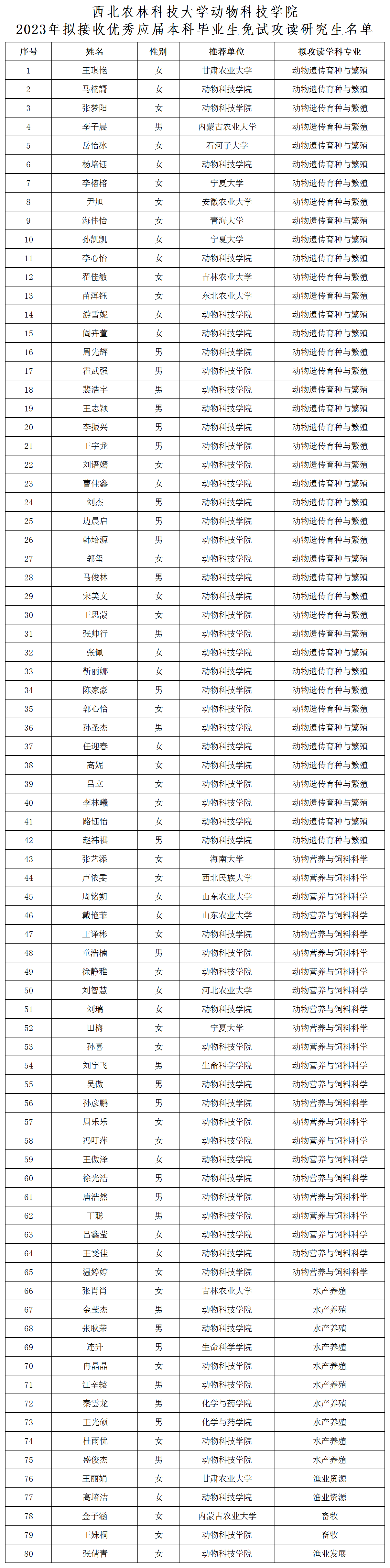 根据学校《关于做好2023年接收优秀应届本科生免试攻读研究生工作的通知》及澳门六合彩高手 《关于做好2023年接收优秀应届本科毕业生免试攻读硕士学位研究生工作的通知》要求,经学生本人申请,澳门六合彩高手 推免工作复试小组考核,澳门六合彩高手 推免生遴选工作领导小组审核,拟接收刘瑞等80名本科生免试攻读研究生。现将名单予以公示(见附件),公示期为9月28日-9月30日。公示期间,若对拟录取结果有异议,请以书面形式向澳门六合彩高手 推免工作监督小组反映,联系电话:029-87092120。