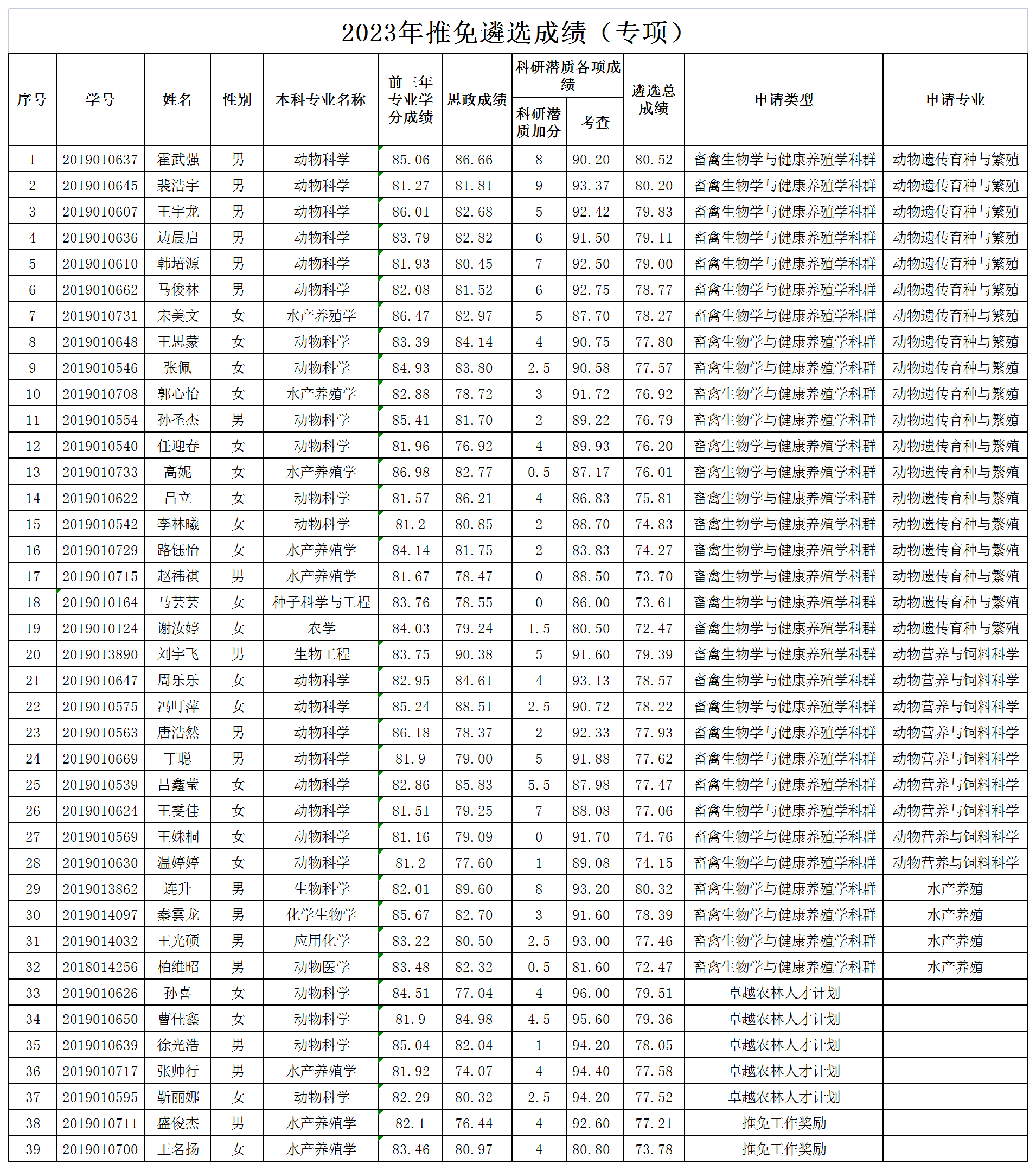 根据《澳门六合彩高手 关于做好2023年推荐优秀应届本科毕业生免试攻读研究生工作的通知》,经个人申请、专家组考核、澳门六合彩高手 推免生遴选工作领导小组审核,现将遴选成绩予以公示,公示时间:2022年9月20日至22日。