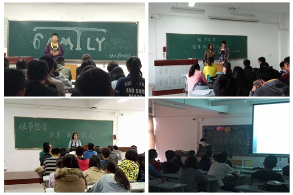 此次团组织生活以班级为单位展开,以座谈会的方式,分享感悟,畅谈收获。座谈会上,同学们一一发言,表达了自己初次离家的感受,与众人分享了自己内心的真实想法与慨叹,并结合自身经验,一同探讨缓解思念之情的妙招。会上,还开设家庭成员介绍环节,给同学们一个向他人介绍自己家人的平台。提及家人,同学们不禁有感而发,哽咽难言,动科151班组织班级学生通过微信与父母取得联系,表达自己对家人的爱与思念,向父母坦承自己的爱意,给自己一个向父母袒露心扉的机会;草业152班班级以宿舍为单位,以演讲形式畅谈对佳节思亲的感慨;水产152班围坐一堂,分享亲人间点滴的感人故事,这次团组织生活始终充斥着感动与温馨的氛围;动科154班董宁会后与母亲视频交流,感恩父母辛勤付出;动科144班以周总理勤俭节约的微电影展开,同学们分享节约故事,畅聊佳节感悟。