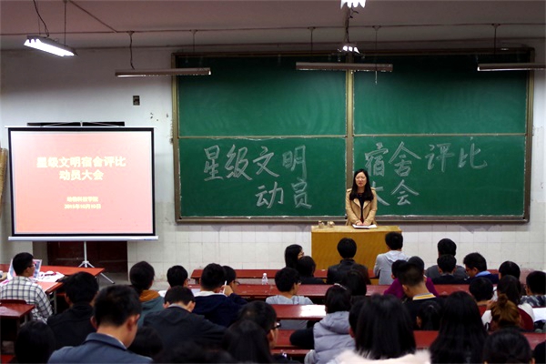 会议就评选“星级文明宿舍”评比的标准、原则、意义、评选办法及奖项设置等有关事项向与会同学进行了详细说明。李锐老师以《澳门六合彩高手 学生星级文明宿舍评比办法(试行)》为依据,针对宿舍卫生、纪律、学风等向同学们提出严格要求,希望大家以此为契机,增强宿舍凝聚力,努力营造舒适、整洁、并浓厚的学习氛围的优秀宿舍。