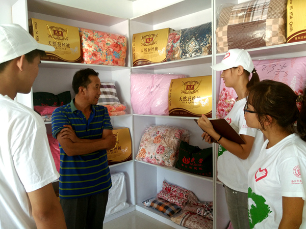 通过张武荣总经理的介绍,队员们了解到吴堡县武荣蚕桑开发有限公司是榆林地区仅存的一家集蚕桑养殖、蚕丝加工及蚕丝被、蚕沙保健枕等销售为一体化的公司。吴堡县栽桑养蚕历史悠久,据清朝道光年间《吴堡县志》记载:“吴民勤农尚武,枣桑甚盛”。公司原为吴堡县利民蚕桑专业合作社,拥有社员160余户,是为进一步扩大规模,带动桑农致富增收,积极推进公司+合作社+农户的运作模式而成立。武荣蚕桑开发有限公司的成立极大的调动了蚕农养蚕栽桑的积极性、促进了周边各村经济发展,受到了政府的大力支持,获得了社会各界好评。