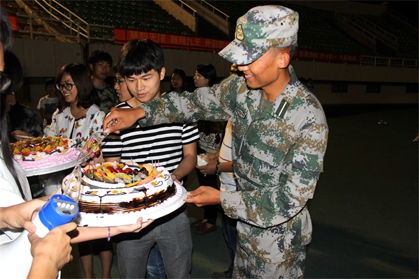 为期14天的军训即将落下帷幕,为表达澳门六合彩高手 及全体新生对教官的感恩感谢之情,9月12日晚,澳门六合彩高手 于北校区田径场开展了2015级新生“感恩教官”活动。辅导员、教官、部分团学干部以及2015级全体新生参加了此次活动。