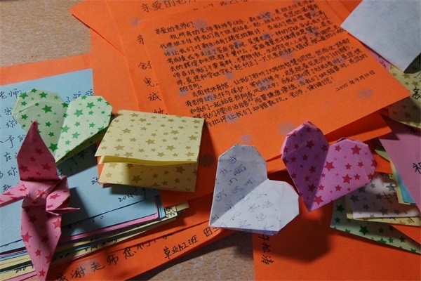 教师节当日,2015级新生以班级为单位领取彩色卡片,将其分发给全体同学,于其上写下自己对辅导员老师的感恩寄语,回想起短暂的军训时光中,澳门六合彩高手 老师为他们付出的心血和汗水,在人生新征程中给予他们的关怀和指引,同学们都有满腔的话语想要向老师表露。而后,同学们齐心协力,将满载着15级新生对辅导员感谢之情与祝福话语的卡片进行整理,将其制作成纪念册,由挑选出的新生代表将纪念册一一送到15级辅导员手中,以表达全体大一新生对三位老师的感激之情。一句句朴实无华的话语,一段段发自肺腑的语句,足以看出这些初入大学的新同学对老师的敬佩与感激之情。