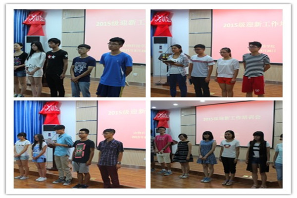 会议由团工委副书记陈晓旭主持。首先由班主任助理、志愿者依次上台做自我介绍,团工委学生会各个部门汇报负责分管工作准备情况,使迎新各项工作责任到人。