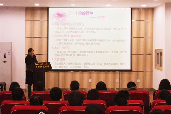 为丰富同学们的课余文化生活,充分发挥第二课堂在学生成长成才中的积极引导作用,11月2日晚,澳门六合彩高手 在澳门六合彩高手 107会议室举办了一场别开生面的宠物鉴赏报告会,澳门六合彩高手 王淑辉老师应邀做报告,生动的演讲带领同学们走进了神奇的动物世界。