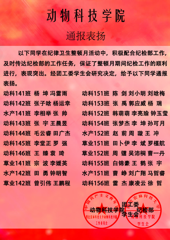 【纪检部】通报表扬