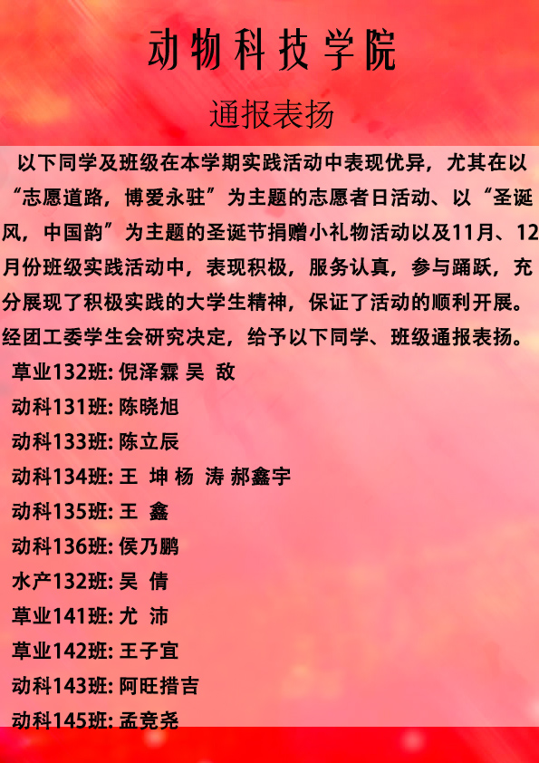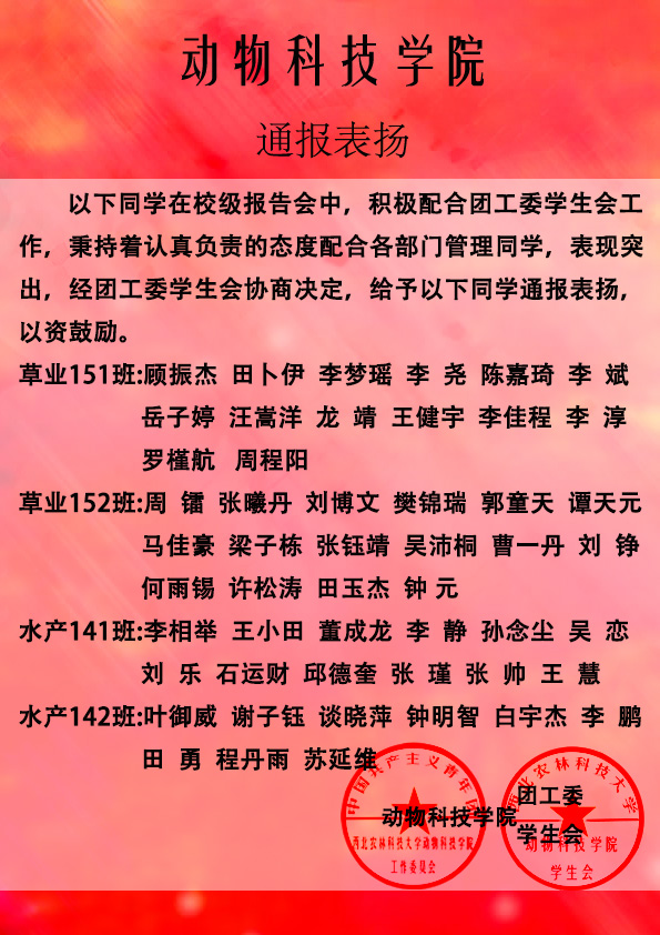 » 【团工委学生会】通报表扬
