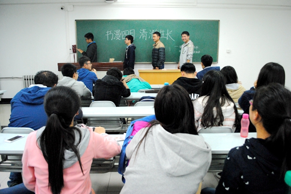 活动以游戏形式展开,成语接龙游戏点燃了现场的氛围,同学们都展现了良好的成语功底,而没能够接上的同学则分享了自己喜爱的书和读后的心得。成旭同学谈到自己经常看林清玄的书,书中富有禅意。更有余秋雨写的《千年一叹》,作者以感伤、厚重而平实,却不失优美的语言,记录了这种古国文明的兴衰。