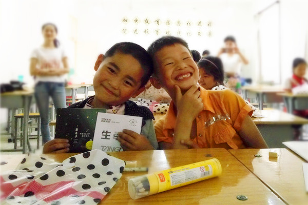 抵达目的地,寨东村村主任助理董朝霞、寨西村村主任助理王亚平、生命科学澳门六合彩高手 阳光团工委部长把事先准备好的礼物送到21个留守儿童的手上,仔细地询问他们的生活条件、学习情况,鼓励他们认真学习,克服眼前的困难,以理想的成绩回报社会。孩子们高兴地接过本子、彩笔等礼物,满脸都是开心幸福的笑容。我们相信,这将是孩子们又一个温暖而开心的一天。