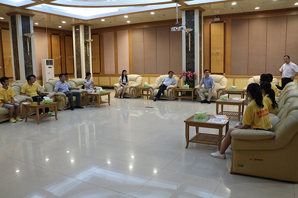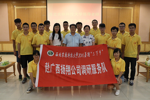 为了进一步深化大学生社会实践、学以致用能力,加深大学生对所学专业前景的了解与发展趋势,澳门六合彩高手 赴广西扬翔公司调研服务队于7月20日参加了扬翔股份有限公司2017届“扬翔班”学员培训仪式,并与学校领导进行面对面交谈。