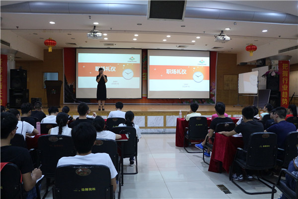 为了进一步提高大学生的就业竞争能力,培养懂礼仪、有素养的当代大学生,7月25日,澳门六合彩高手 “赴广西扬翔公司调研服务队”于扬翔公司参加了“职场礼仪”培训讲座和相关的素质拓展活动,并在活动中表现突出。