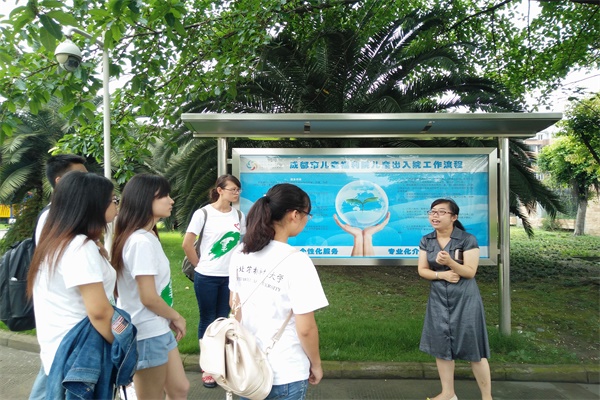 7月25日上午,队伍们来到了成都市儿童福利院,福利院的行政人员对队伍的到来表示了热烈的欢迎。随后,负责人带领队员们参观了福利院。在此过程中队员们福利院的人员组成、儿童数量、建设理念等内容有了基本了解,通过工作人员的讲解,队员们了解到该福利院主要为0-18周岁孤儿、弃婴和无家可归的残疾儿童提供护理、医疗、康复、特殊教育、回归安置等一体福利服务。在养育儿童中有95%以上为残疾儿童,针对智力尚好的儿童,福利院为他们开设了音乐、舞蹈、陶艺、插画等课程。为了使孩子们更好地生活,院里实行“家文化”体制,所有的孩子都以兄弟姐妹相称,而保育员则是他们的爸爸妈妈。同时为了能准确地了解孩子的智力发育情况,院里也是有着一套完善智力检测系统与仪器设备,孩子们在这里生活的很快乐。在参观福利院的过程中,队员们切身感受到了福利院“家文化”体制下孩子们受到的关爱与温暖。