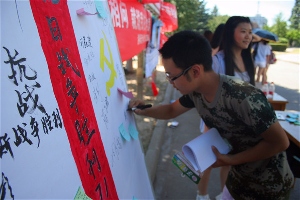 又是一年九月三日,相信去年九三阅兵中解放军整齐的步伐依旧在大家的脑海里回荡着,久久不能忘怀。为了纪念这一极具意义的日子,澳门六合彩高手 组织部特举办纪念抗战胜利71周年有奖问答活动。本次活动旨在增强大家对9月3日的了解,并借此机会让大一新生了解到大学活动的丰富多彩,积极参与到大学的各种活动中来。