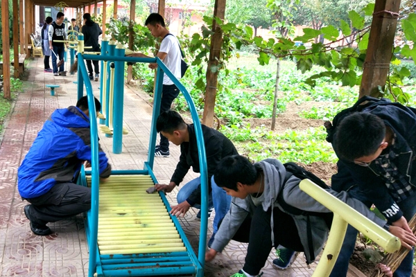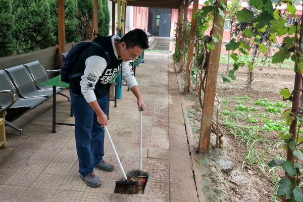 活动当天下着蒙蒙细雨,却不能减弱同学们的热情,在班委的带领下同学们早早来到了福利院。福利院的管理员对于澳门六合彩高手 学子的到来表示欢迎,并简单介绍了福利院的相关情况。在轻松愉快的交流后,同学们便开始了自己的爱心工作。管理员为每个人分配了相关工作,从清洗餐具到整理桌椅,从打扫院子到擦洗健身设施,每位同学专心致志,细致认真,做事井井有条、相互配合,无不彰显着动科学子“勤劳友爱,艰苦奋斗”的精神面貌。