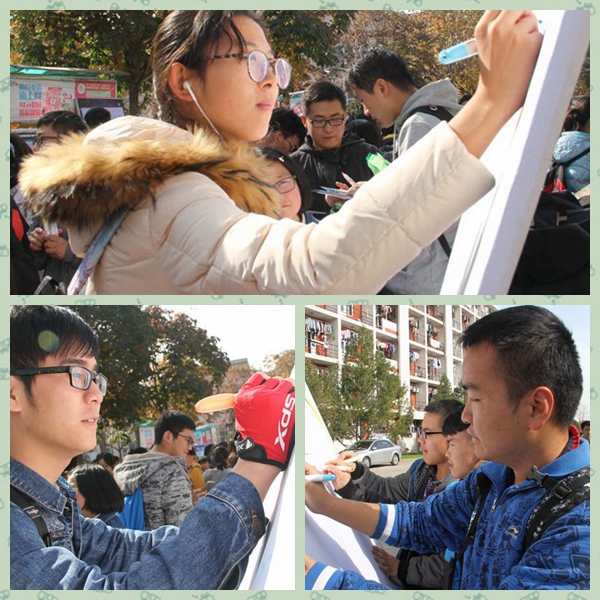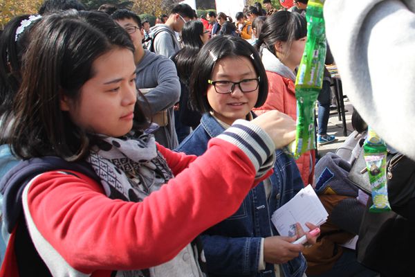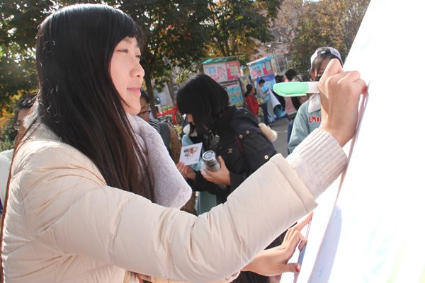 11月11日的“光棍节”作为一种校园趣味文化已延续多年,为庆祝这一独特的节日,丰富学生课余生活,缓解学业压力,给同学们一个面对自我的平台,展现我校学生青春的蓬勃朝气。澳门六合彩高手 宣传部于11月11日中午在西区雕塑旁举行“开心写意”活动。