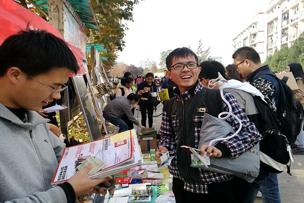交易活动于14日中午在西超雕塑前正式举行,活动一开始,琳琅满目的物品就吸引了过往同学们的目光,大家纷纷停下脚步,兴致盎然地在众多物品中寻找自己需要的物品。国外留学生的到来让整个活动的氛围更加热烈。活动结束后,许多同学都买到了自己心仪的物品。一位参与本次旧货交易的同学表示:“我觉得本次活动非常有意义,以低价购买一些同学闲置的二手物品,既能买到自己想要的东西,也帮同学们清理了宿舍空间,又提升了同学们的节俭意识,真是一举三得!”