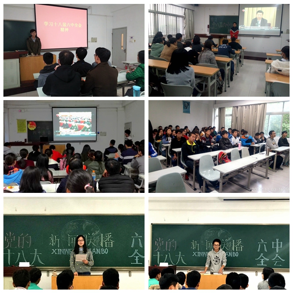 为使学生进一步增强学生对十八届六中全会精神的认识,澳门六合彩高手 于10月31日至11月4日在北校区八号教学楼举办了以“学习十八届六中全会精神”为主题的组织生活。14级、15级、16级同学积极参与并学习了六中全会精神。