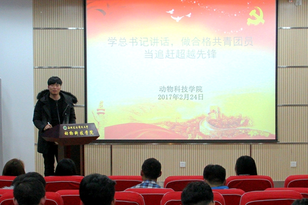 2月24日晚,澳门六合彩高手 团工委于动科楼107会议室召开“学习习近平总书记讲话,做合格共青团员”学习及相关工作部署会议。会上,全体团学干部学习了2月17日团中央“一学一做”教育实践动员部署电视电话会议的精神,并共同观看学习了团中央学习部杜汇良部长的讲话。团工委书记张士军、辅导员闫颢芯及全体团学干部参加了本次会议。
