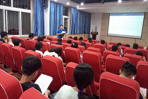 乐老师以六级的卷面分值为基础,着重对分值较大的听力做出分析。他对听力的三种题型依次剖析细节,并传授听力练习的相关技巧。乐老师博闻强识、风趣幽默,在传授经验的同时,更是将自己整理的复习资料与同学们分享,大家在领会其精髓的同时,也极大地增强了对六级考试的信心。