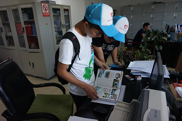 队员们在档案馆查阅资料