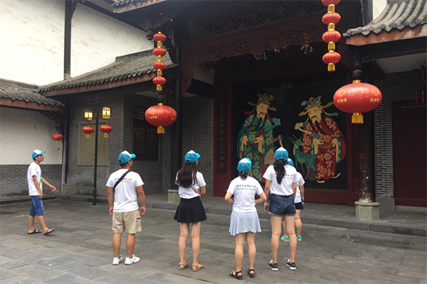 在带队老师的引领下,全体成员前往剑南老街,通过实地的参观考察及对当地居民的采访,队员们了解到,老街以“天益老号”酒坊遗址为依托,完全按照明清风格建筑设计并按照国家4A级标准建成,古色古香,韵味十足。除此之外,队员们还通过品尝当地小吃、聆听当地戏曲、体验居民生活等方式体检了当地居民的日常生活,进一步感受到老街对经济、生活的重要影响。活动期间,队员的到来受到了居民们热情地欢迎,壮美的景观和亲切的招待深深感染了大家。