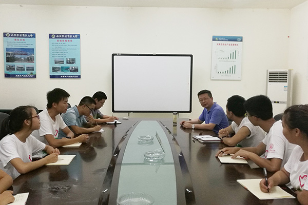当天晚上,带队老师吉红与队员们在安康市水产试验示范站会议室进行了一场座谈会。队长王文韬汇报并总结了近期小队的走访和调查情况,队员们也依次发表了近期活动的感想。吉红老师说:“安康是南水北调中线工程核心水源区,这就决定了安康渔业必须在保证水质的前提下发展,如何将水产养殖扶贫产业开发与环境保护协调推进是我们必须关注的问题。”在吉红老师的指导下,队员们又锁定了安康水质检测中心和管委会渔业局等环保相关部门,将针对上述问题进行深入调研。