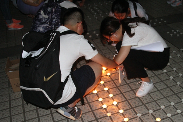 活动过程中,同学们点燃“9·18”字样的白色蜡烛,在闪闪烛光中,庄重默哀,表达自己对国耻的悲痛与悼念。除此之外,澳门六合彩高手 四名自愿者自发组织诗词朗诵,用壮丽的言语抒发爱国复兴之志。活动现场吸引了各院同学,大家纷纷驻足默哀,气氛沉重。