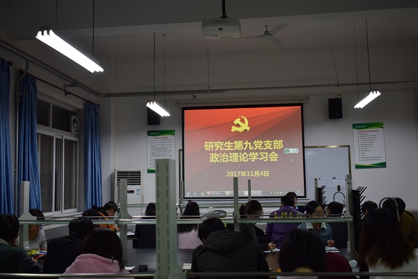 11月4日晚上7点,澳门六合彩高手 研究生第九党支部于动科527室召开理论学习会议,为了便于大家更好学习党章、遵守党章、贯彻党章、维护党章,本次会议主题是对党的十九大通过的党章修正案进行系统、全面、深入的学习,本支部22名党员和3名入党积极分子均参与了本次理论学习会议。