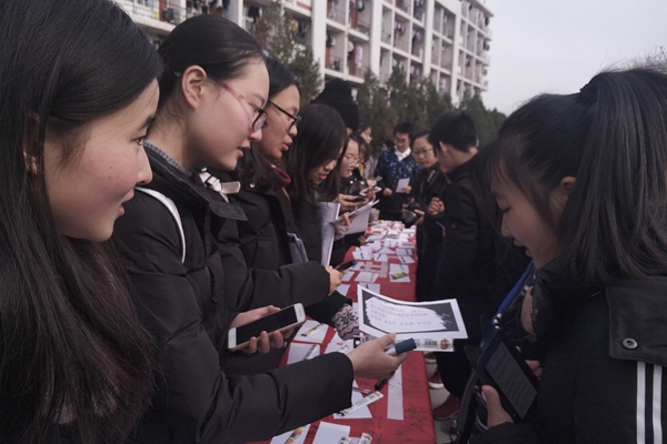 本次活动由澳门六合彩高手 与人文、外语、信工三院组织部联合举办,包括合唱活动和知识问答两个部分。合唱活动采用新颖的“快闪”形式,邀请了四十名17级的同学们参加。当端庄悠长的长号声响起时,人群中合唱队的同学们立刻排好阵型,唱起了嘹亮的红色歌曲《映山红》和《在太行山上》,吸引众多同学们驻足观看。演唱结束后,合唱队的同学迅速离开,观看的同学们发出阵阵赞叹,掌声接连不断。随后,“一二九历史知多少”问答活动在西雕展开,同学们踊跃参与竞答,现场秩序井然,气氛热烈。参与活动的同学们纷纷在宣传横幅上签下自己的名字,表示了对革命先烈的崇敬以及对革命精神的赞叹。