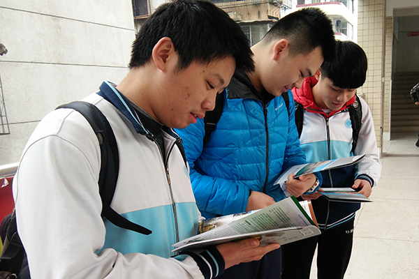 同学们认真阅读我校招生宣传材料