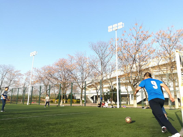 支部成员分别在郭龙博士、武圣儒博士的带领下,进行5v5男女混合比赛。此次比赛参与度很高,不仅有场内精彩绝伦的密切配合,还有场外热情似火的呐喊助威。双方队员一次次的带球过人突破防线,将比赛推向高潮。我校足球队前成员郭龙博士表示:“虽然大家不是专业的球员,但均展现出良好的团队合作精神。”