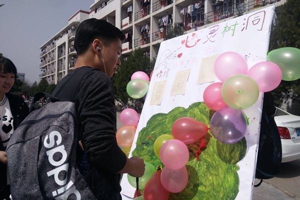 暖春时节是学生心理问题涌现的高发阶段。为了让同学们正视自己的问题和困惑,给学生搭建一个 “宣泄、表达、倾诉、慰藉”的平台,3月25日,澳门六合彩高手 心理健康部在西区雕塑举行 了以“心愿树洞,宣泄压力”为主题的心理咨询活动。