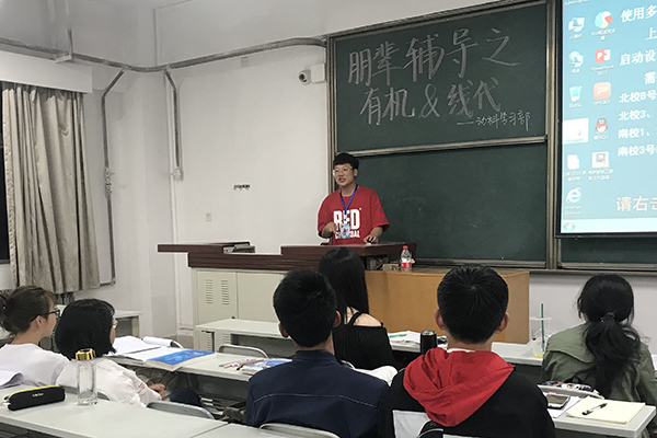 结课考试将近,为帮助17级同学们摆脱考前恐慌,巩固学科知识,由澳门六合彩高手 学习部主办的“朋辈辅导”系列活动第一次朋辈课堂于5月1日在8号教学楼8608教室开课了。水产162班张黎和刘涛同学担任本次讲师,为大一的同学们讲解了线性代数与有机化学相关知识及考点。