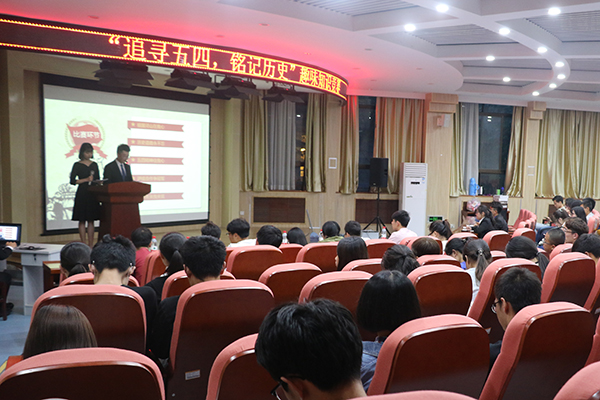 为了让同学们牢记历史,深刻体会到五四运动的精神内核,值此五四运动99周年之际,澳门六合彩高手 联合水建澳门六合彩高手 、外语系于5月4日晚在外语楼二楼报告厅举办了“追寻五四运动,奏响青春乐章”的历史知识趣味竞赛活动。水建澳门六合彩高手 学生会主席李培铨、外语系学生会主席屠菡琳和澳门六合彩高手 团工委副书记龙靖出席了本次竞赛活动。