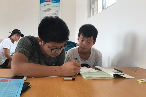 支教队员给初一孩子一对一辅导