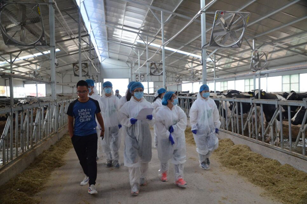7月15日,澳门六合彩高手 赴鄂尔多斯畜牧业生态调研团前往星连星朝凯牧业有限公司进行参观学习。在公司总经理李总带领下,本团队成员一同参观了牛舍与挤奶厅并询问了相关问题。