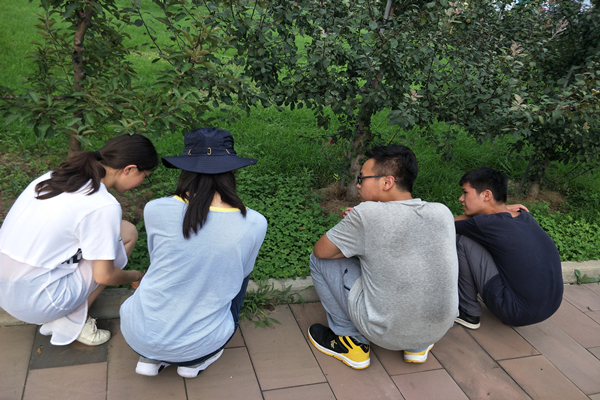 此次调查的目的主要为调查果园生草的优势牧草品种及果园常见杂草的种类,但在考察的过程中队员们发现试验站中对于果园套种的研究并不局限于牧草的套种,试验站中除却传统优势豆科牧草——小冠花、白三叶、杂三叶等之外,还套种有萝卜等常见蔬菜、地黄等中药材。试验站内进行的相应实验显然比队员们之前对于果园生草方面知识的了解更为广阔,这对于提高队员们对于果园生草技术的了解、开拓视野等方面有着及其显著的作用。