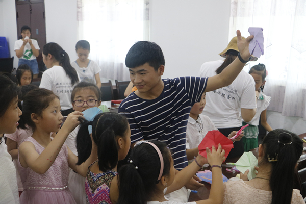 7月18日,澳门六合彩高手 赴杨凌新集村支教服务队如往日一样,早早到达支教地点,为今日课程做准备。活动中,队员们给孩子们播放音乐剧开阔孩子们的视野,培养其艺术鉴赏能力,并在手工课上教孩子们折风车信封,锻炼他们的思维和动手能力。