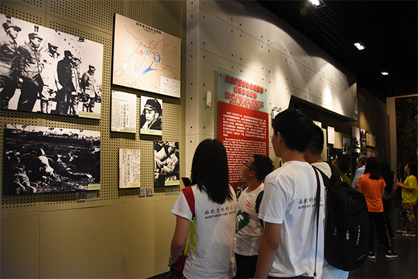 该纪念馆分为战史馆、支前馆、烈士馆、全景画馆等几个分馆。陈列于纪念馆中的一座座庄严的雕像,一张张泛黄的纸张,一把把锈迹斑斑的枪支,一件件布满补丁的衣裳,都在无声地诉说着往昔峥嵘的岁月。其中,全景画馆更是采用了绘画、塑形、灯光、音响等多种艺术形式,生动地再现了辽沈战役中的关键性战役--攻克锦州的宏大场景。在馆内讲解员的介绍下更是渲染出了这场战役的紧张激烈,调研团成员们被革命前辈们不畏强敌,敢于斗争,捐躯赴国难,视死忽如归的勇敢精神和坚定信念撼动心灵。