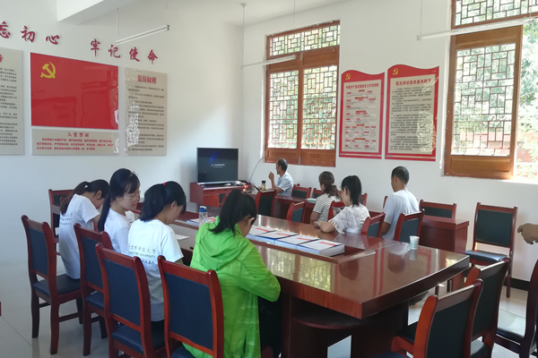 早上,队伍来到庙湾村,与村委会干部进行了交流与沟通,了解近几年庙湾村的发展与变化,同时也参加了该村委会每周的例行思想学习会议,使得队员们更加了解脱贫的重要性,以及坚定社会主义思想的必要性。