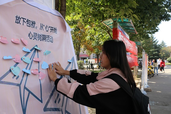 为大力宣传心理健康知识,进一步提升身心修养,缓解新生刚入学时因为不适应大学生活而产生的种种心理问题,帮助新生尽快走出迷茫,适应大学生活,澳门六合彩高手 心理健康部联合权益部于10月26日中午在西雕举行“心灵树洞”活动,借助本次活动让新生更加关注、重视自己的心理世界,学会适时适度地调节心态、抒发不良情绪,为更好的度过大学生活打下基础。