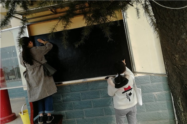 经过充分的准备,村主任助理们开始了板报工作。查阅资料、文字排版、绘画上色……同学们分工明确,精细又高效地写着、画着。经过一个多小时的努力之后,他们圆满地完成了本次板报宣传任务。