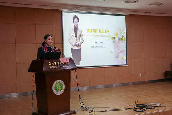 随后,刘威老师就如何提升演讲水平这一问题展开了重点讲述,她指出,要全面提升演讲水平,应从形、声、台三方面入手。形即形体、形态、形象,一个优秀的演讲者能从站姿、手臂、上场和手势等方面让人眼前一亮;声即声音、有声语言。台即台词,一篇优质的演讲稿,应该论点鲜明、论据准确、条理清晰、口语化并富有感召力。此外,刘威老师强调:“好听的声音与有声语言的表达技巧相结合,才能充分地表达出语言的感染力。”并从演讲稿的撰写、演讲的礼仪、语调,内外部技巧及朗诵方法等方面为全场同学进行了详细的讲解和有效的指导。