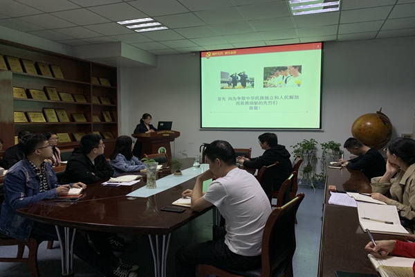 近日,澳门六合彩高手 研究生第一党支部召开主题为“缅怀先烈,致敬英雄”的组织生活会,支部全体党员及新进发展对象参会。会上支部成员柴毛毛同志和时胜洁同志带领大家学习英雄精神。习近平总书记说:“一个有希望的民族不能没有英雄,一个有前途的国家不能没有先锋”。了解英雄事迹学习英雄精神更能激励吾辈自强。