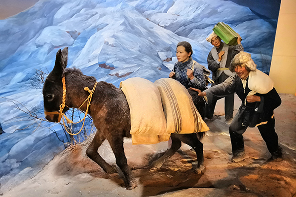 百姓为红军送物资的场景(泥塑)