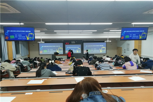 为了考察学生们对生化技能的了解,由教务处主办、澳门六合彩高手 承办的第九届生物化学知识技能大赛初赛于2020年12月6日下午七点半在八号教学楼阶梯教室举办,此次比赛是首次采用手机考试的形式,形式新颖。