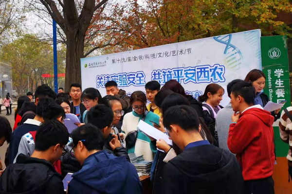 为进一步提高同学们对实验室安全工作重要性认识,学习实验室安全知识,增强安全防范能力,切实强化安全红线意识,共建和谐平安校园。2019年11月8日,澳门六合彩高手 研究生会和学生会在南校苦楝广场举行了金秋科技文化艺术节之第三届实验室安全知识竞赛的第二·次宣传活动。