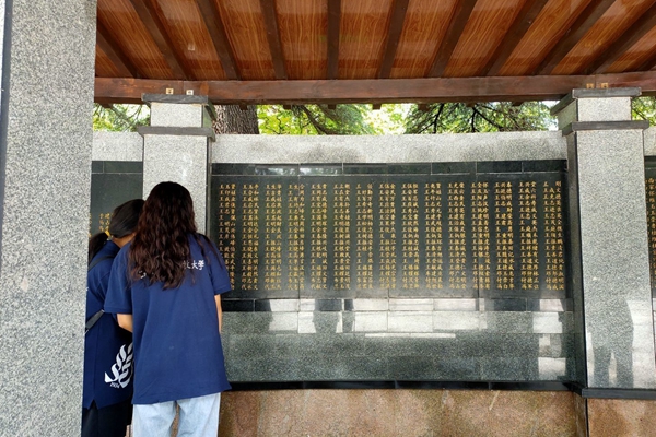 在烈士英名录前,队员们对于这些烈士的数目表示十分震撼,熟知红色历史的队员毋卓鹏为我们讲述道:“这些烈士大多是因病重或过劳、英勇就义而长眠于此,他们为了信仰而奋斗,为人民奉献自己,为国家、为民族将自己宝贵的青春岁月奉献给党的事业,我觉得是十分宝贵的!我们可能没有机会上阵杀敌,体会这样的艰难,但作为年轻一代的我们,不能、也不应该忘记为新中国红色政权的建立抛头颅洒热血的革命前辈!”队员们十分认同,随后,队长马妍妍带领全体队员进行默哀,向英雄致敬。